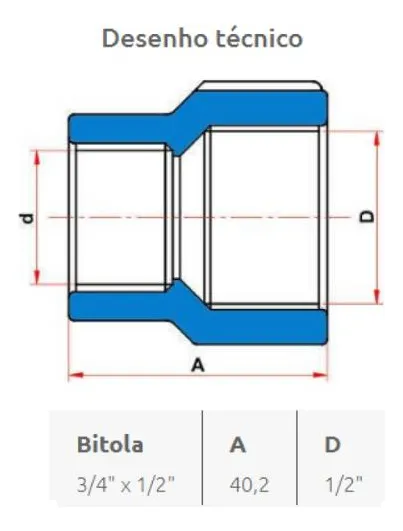 ▶ Conteúdo: 1 Luva rosca 3/4"x1/2" (25x20mm)